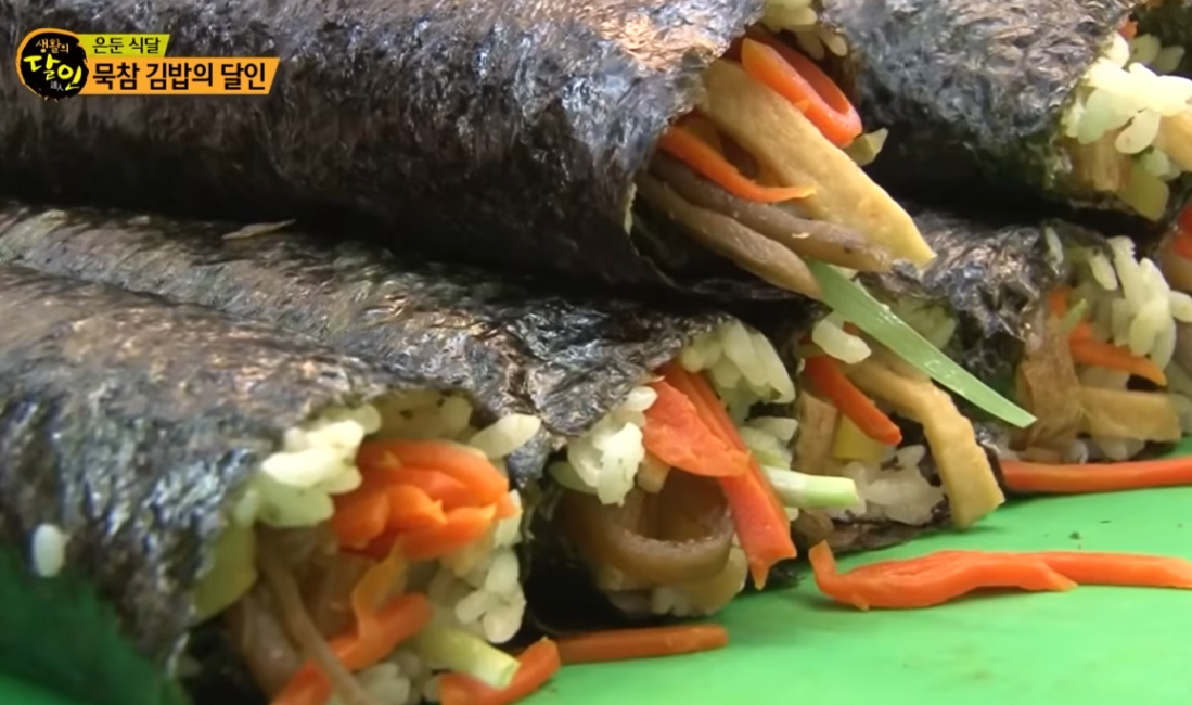 용산구 대학가 주변에서 '묵참'으로 입소문이 난 김영심 달인의 김밥은 밥 색깔부터 다릅니다. 초록빛이 도는 밥을 보고 처음에는 "이게 위생적으로 괜찮은 건가" 싶었던 분들도 있을 것입니다. 저도 방송을 보면서 그 의심이 먼저 들었으니까요.